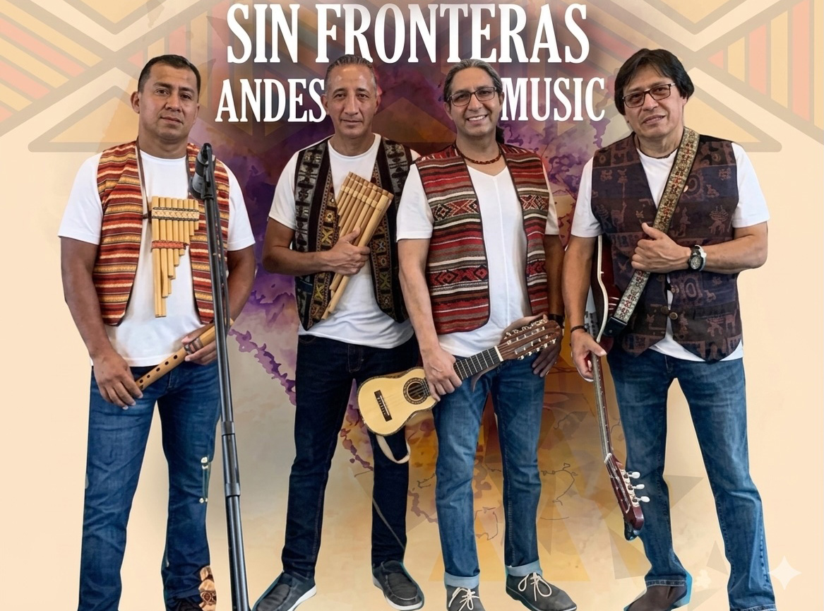 SIN FRONTERAS, agrupación con sede en Hartford, interpreta un amplio repertorio de música tradicional andina, destacando instrumentos legendarios de esta cordillera tales como la quena, la zampoña y el charango. El cuarteto celebra la rica cultura musical de los países de origen de sus integrantes: Perú, Ecuador y Chile. Desde hace casi una década, Sin Fronteras ha compartido los ritmos y melodías de raíces andinas y mestizas a través de conciertos y talleres escolares por toda Nueva Inglaterra.